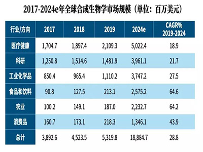 由此,合成生物學(xué)帶來的應(yīng)用層面的市場空間十分廣闊。