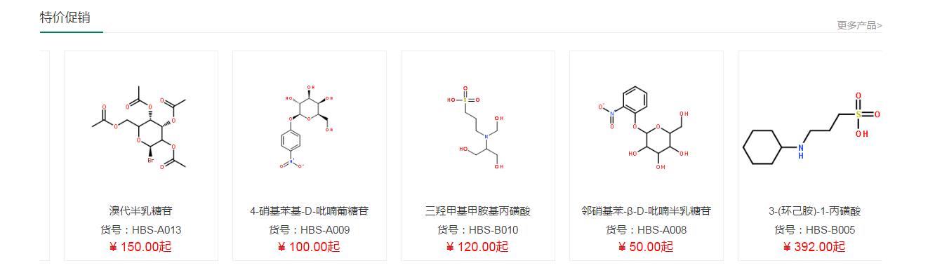 目前我們擁有上千款生化試劑品種,根據(jù)產(chǎn)品的不同包裝規(guī)格進(jìn)行定價(jià),價(jià)格展示一目了然,用戶可以根據(jù)產(chǎn)品名稱(chēng)或者CAS號(hào)進(jìn)行產(chǎn)品及商品價(jià)格查詢。